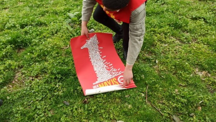 Demir, “Aslında her zaman ki gibi afiş asıyorduk. Olağanüstü bir durummuş gibi bir sürü polis geldi. Afişlerimize el konuldu. Yarım saatten fazla bizi beklettiler” dedi.