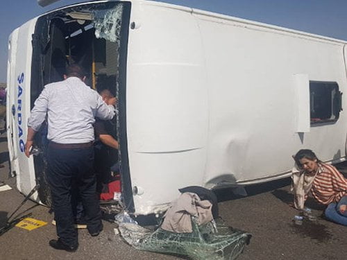 Elbistan Devlet Hastanesi Bilgi İşlem Bölümü’nde çalışan Hak-İş üyesi işçilerin bulunduğu otobüs, Birecik yakınlarında şoförün kontrolü kaybetmesi nedeniyle devrildi.