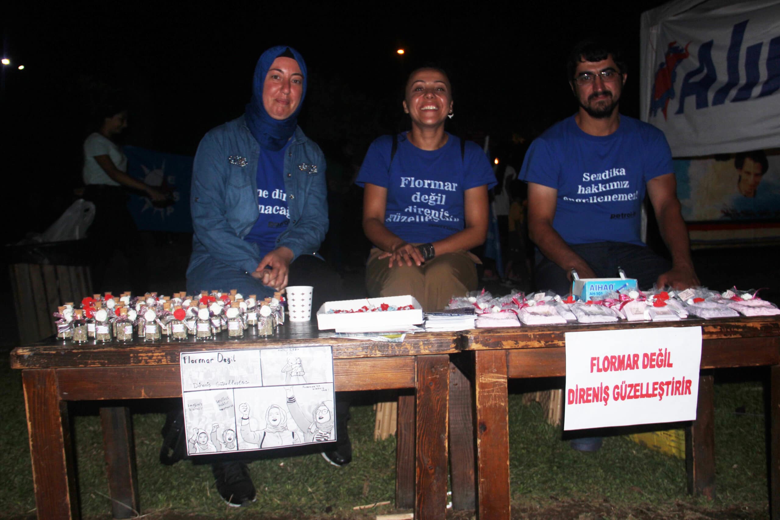 Festival alanında direnişlerinin 110. günündeki Flormar işçileri de stant açarak bir konuşma gerçekleştirdiler. Direnişte karşılaştıkları baskılara değinen Flormar direnişçisi “Umudumuzu kaybetmeden 110 gündür direniyoruz, savaşıyoruz ve bu direnişimizi kazanana kadar da mücadelemizi bırakmayacağız” diye konuştu. “Flormar işçisi yalnız değildir” sloganlarının atıldığı konuşmanın ardından kadın örgütlerinin düzenlediği “Kadının ekonomik durumu” konulu ikinci panele geçildi. Panelde SKM, TJA, YDK’den temsilciler konuşmalarını gerçekleştirdiler. Kadının karşılaştığı ekonomik sorunların üretim ilişkileriyle ilişkisine vurgu yapılarak somut örneklere yer verilen konuşmalarda kadınların eşitlik mücadelesinin devrim mücadelesindeki önemine vurgu yapıldı.