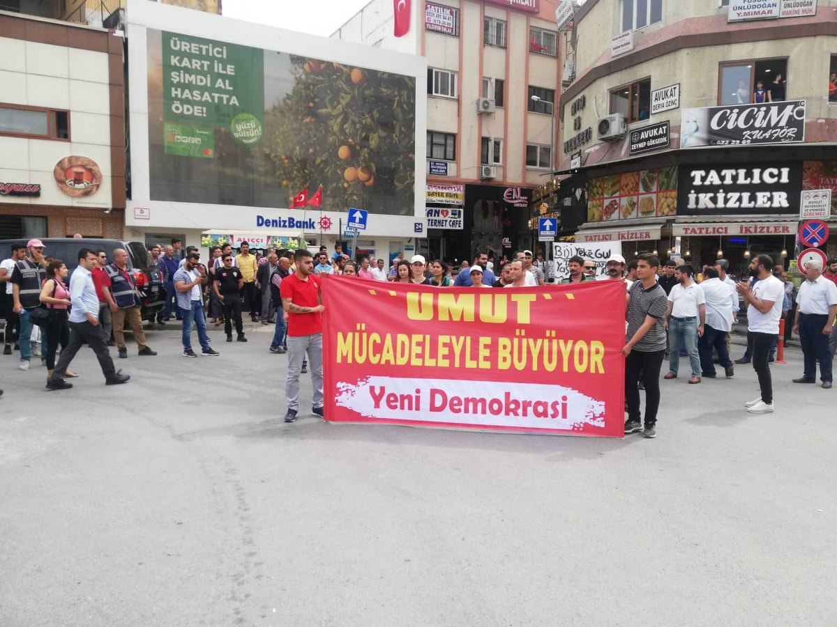 MERSİN- Saat 14:00’de Cetvel Köprüsü üzerinden başlayan mitinge Yeni Demokrasi ve Partizan okurları”Umut Mücadeleyle Büyüyor” pankartı ile katıldı.