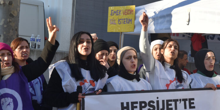 Esenyurt’ta bulunan HepsiJET deposunda çalışan 4 kadın işçi, tacize, kölece çalışma koşullarına karşı haklı fesih yaparak haklarının verilmesi için 12 gündür direnişi sürdürüyordu.
