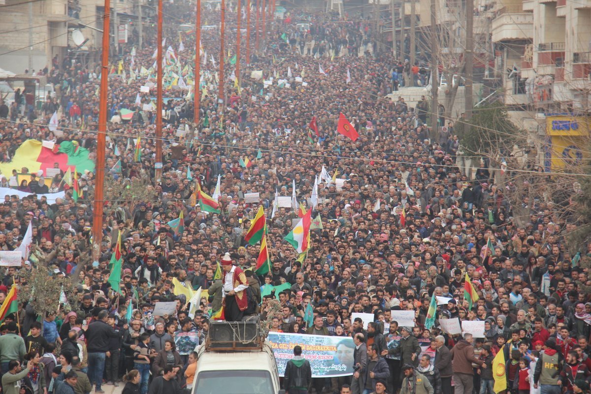Efrin halkı bombalara meydan okuyor: “Kahrolsun 15 Şubat komplosu!”