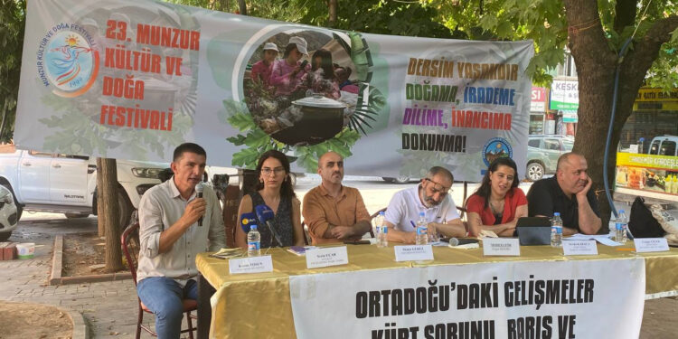 23. Munzur Kültür ve Doğa Festivali kapsamında Ergin Doğru moderatörlüğünde ‘Ortadoğu’daki Gelişmeler, Kürt Sorunu, Barış ve Demokratik Çözümü’ konulu panel düzenlendi. Panele Partizan, ESP, EMEP, SMF ve DEM Parti temsilcileri katıldı.