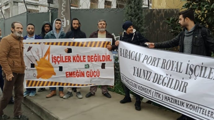 Küçükçekmece’de bulunan Babacan Port Royal Şantiyesi’nde Prohas adlı taşeron firmada çalışan 19 işçi 4 aydır ödenmeyen ücretlerinin ödenmesi için şantiye önünde oturma eylemine başladı. “Babacan Port Royal işçileri yalnız değildir” pankartının açıldığı açıklamaya İşçi Temsilcileri Konseyi (İTK) Hazırlık Komiteleri ve Emeğin Gücü Derneği destek verdi.