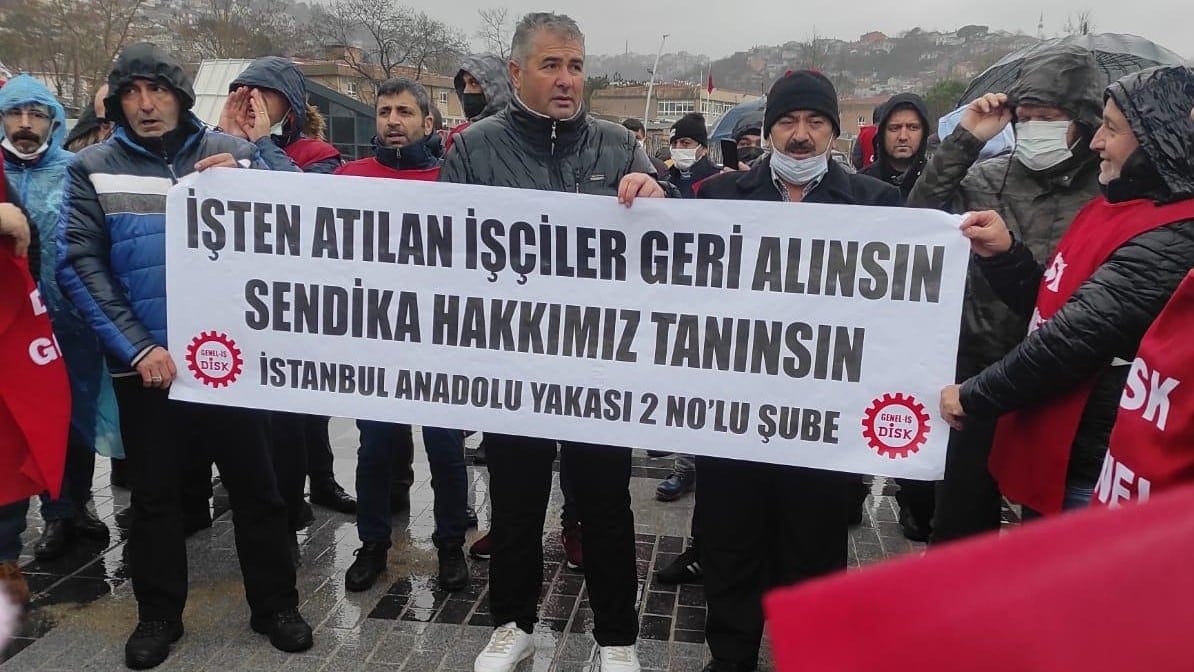 AKP’li Beykoz Belediyesi’nde çalışan Hak-İş’e bağlı Hizmet-İş’ten istifa ederek DİSK’e bağlı Genel-İş Sendikasında örgütlenen işçiler arasından 7 işçi İş Kanununun 17. maddesi gerekçe gösterilerek işten atıldı. Beykoz Belediyesi önünde eylem yapan Genel-İş Anadolu yakası 2 No’lu Şube üyesi işçiler işten atmaların sendika seçme özgürlüğüne müdahale olduğunu ifade ederek işten atılan işçilerin bir an önce işlerine iade edilmesini istedi. Belediye önündeki eyleme Maltepe Belediyesi işçileri, Genel-İş Anadolu Yakası 1 No’lu Şube temsilcileri ve işçileri, Genel-İs Konut İşçileri Şubesi yönetimi, Genel-İş Şişli Şube yöneticileri de destek verdi. Gerçekleştirilen eylemde basın açıklamasını Genel-İş Anadolu Yakası 2 No’lu Şube Mali Sekreteri Cihan Demir okudu.