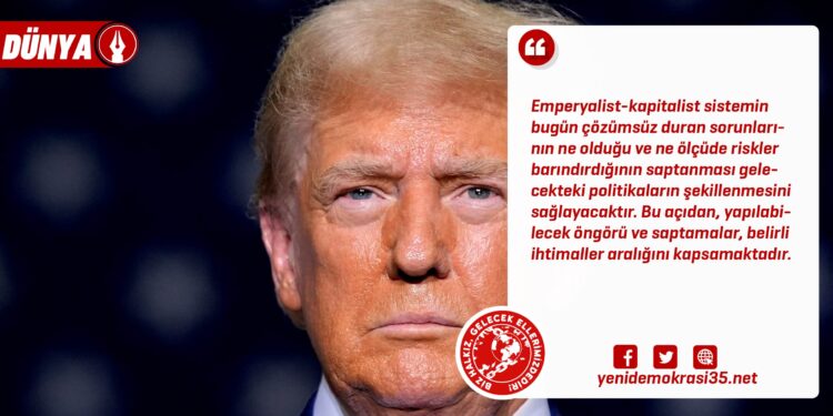 Ancak her ne kadar “şahin politikalar ve söylemler” üzerinden bir sürece girilmiş olsa da bu süreç tek taraflı gelişmemektedir. Zamanla bu söylemlerin yumuşaması veya dönüşmesi de mümkündür. Emperyalist-kapitalist sistemin bugün çözümsüz duran sorunlarının ne olduğu ve ne ölçüde riskler barındırdığının saptanması gelecekteki politikaların şekillenmesini sağlayacaktır. Bu açıdan, yapılabilecek öngörü ve saptamalar, belirli ihtimaller aralığını kapsamaktadır. Ancak emperyalist-kapitalist sistem, kendi çıkarlarını korumak adına dünya halkları üzerindeki sömürüyü derinleştirmek, talanı büyütmek ve katliamları artırmak yönünde adımlar atmaya devam edecektir.