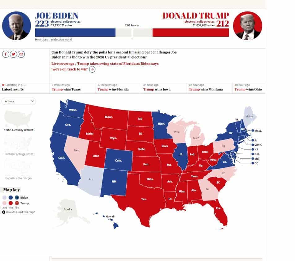 Demokratların adayı Joe Biden ise kilit eyaletlerden olan Florida’yı kaybetmiş olmasına rağmen seçimi kazanacağına inandığını söyledi: “Bu seçimi kazanma yolunda olduğumuza inanıyorum.”