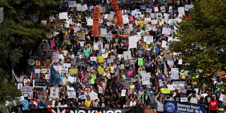 İlki haziran ayında düzenlenen ve Trump’ın ülkeyi daha “militer ve otokratik” bir yöne götürdüğüne dikkat çekilen “Krallara Hayır” protestolarının ikincisi ABD genelinde gerçekleştirildi.
