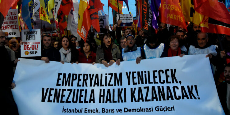 ABD emperyalizminin Venezuela’ya yönelik saldırıları İstanbul’da protesto edildi. İstanbul Emek, Barış ve Demokrasi Güçlerinin çağrısıyla aralarında Partizan’ın da olduğu kitle Taksim Tünel Meydanında bir araya geldi. ABD’nin askerî müdahalelerine ve Venezuela’nın egemenliğine yönelik tehditlerine karşı tepki gösterdi. Eylemde sık sık antiemperyalist sloganlar atılırken, Venezuela halkıyla dayanışma vurgusu öne çıktı.