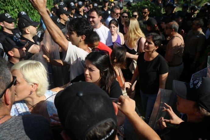 Adana’da LGBTİ+ Onur Haftası Komitesi’nin açıklamasına saldıran polis, aralarında avukatların da olduğu 18 kişiyi darp ederek gözaltına aldı.