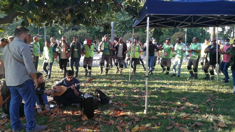 Öte yandan işçiler geceyi de İBB önünde geçirme kararı aldı. Bunun üzerine İBB önündeki parka çadır kuruldu.