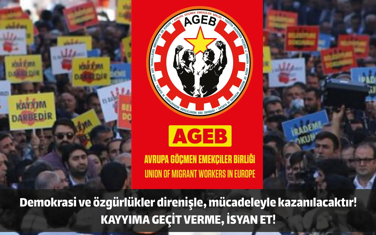 Avrupa Göçmen Emekçiler Birliği (AGEB) Mardin, Batman ve Halfeti belediyelerine atanan kayyım saldırısına karşı açıklama yayımladı. Açıklamada, faşizme karşı isyan etmeye ve örgütlenmeye çağırdı.