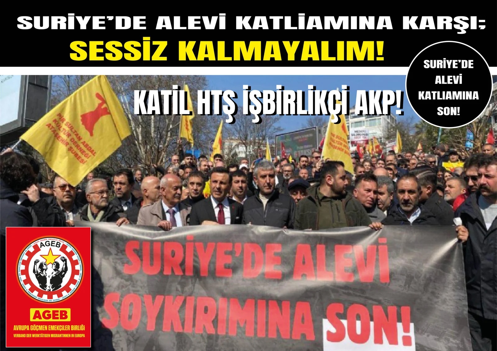 Avrupa Göçmen Emekçiler Birliği (AGEB) Suriye’deki Alevi katliamına ilişkin yazılı bir açıklama yayımladı. AGEB, katliama karşı tüm alanlarda eyleme çağırdı.