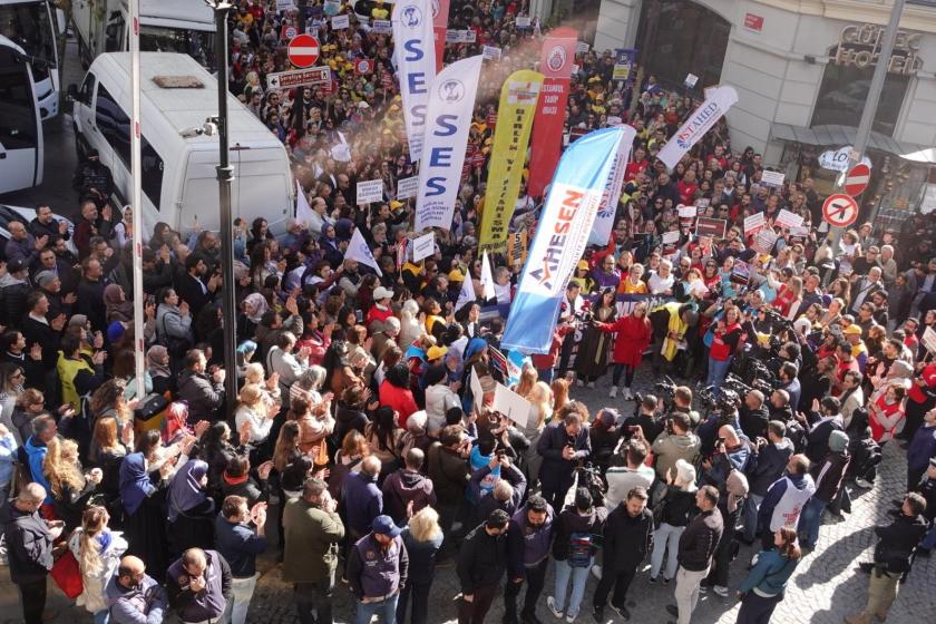 İstanbul’da sağlık meslek örgütleri, Sağlık Bakanlığının Aile Hekimliği Yönetmeliği’ne tepki göstermek için Çemberlitaş’ta bulunan İl Sağlık Müdürlüğü önünde bir araya geldi. “Eziyet yönetmeliği istemiyoruz” pankartı açan sağlık emekçileri sık sık “Ebe hekim ele ele hep beraber greve”, “Yaşamak yaşatmak istiyoruz”, “Susma haykır eziyete hayır”, “Hekimlik yapmak istiyoruz”, “Bakan şaşırma sabrımızı taşırma” sloganı attı.
