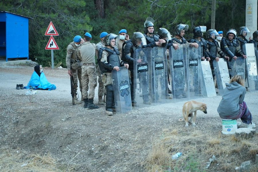 Gün içinde jandarma direniş alanının boşatılmasını istemişti. İkizköy Çevre Komitesinden Deniz Gümüşel, “Nöbet alanında Milas İlçe Jandarma komutanlığı ve Milas afetten sorumlu ek olarak atanmış kaymakam geldi ve Muğla Valiliğinin ormanlara giriş yasağıyla ilgili kararını ileterek alanın boşaltılmasını söyledi. Biz boşaltmayacağımızı her ne talimata dayanarak bizi buradan dışarı çıkarmak istiyorlar o talimatı yazılı olarak göndermelerini istedik. Avukata vereceğiz, gerekli idari itirazları yapacağız” dedi.