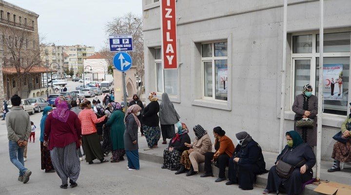 Kızılay Aksaray Şubesi önünde sabah erken saatlerde toplanan, çoğunluğu kadınlardan oluşan kabalalık, geçmiş ramazanlarda olduğu gibi bu yıl da yardım dağıtılacağı söylentisiyle beklemeye başladı. Kalabalık, yaklaşık 300 metreyi bulan sırada beklemeye başladı.