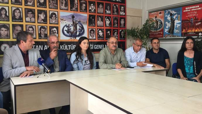 PSKAD Genel Merkezi’nde düzenlenen basın toplantısında ortak metni ABF Genel Sekreteri Ali Aktaş okudu. AKP iktidarının 31 Mart ve 23 Haziran seçimlerinde ağır bir yenilgi yaşadığını ve bu yenilginin acısını muhalif toplum kesimlerinden çıkarmaya çalıştığını ifade eden Aktaş, “Siyasal ve toplumsal alanda artık rıza ile iktidarını sürdürmekte zorlanan, rant ve talan politikalarıyla ekonomiyi ağır bir krizin içine sürükleyenler, hızla büyümekte olan ve iktidarlarını sarsan tepkinin önüne geçmek için baskıya ve zorbalığa başvurmaktadırlar” dedi.