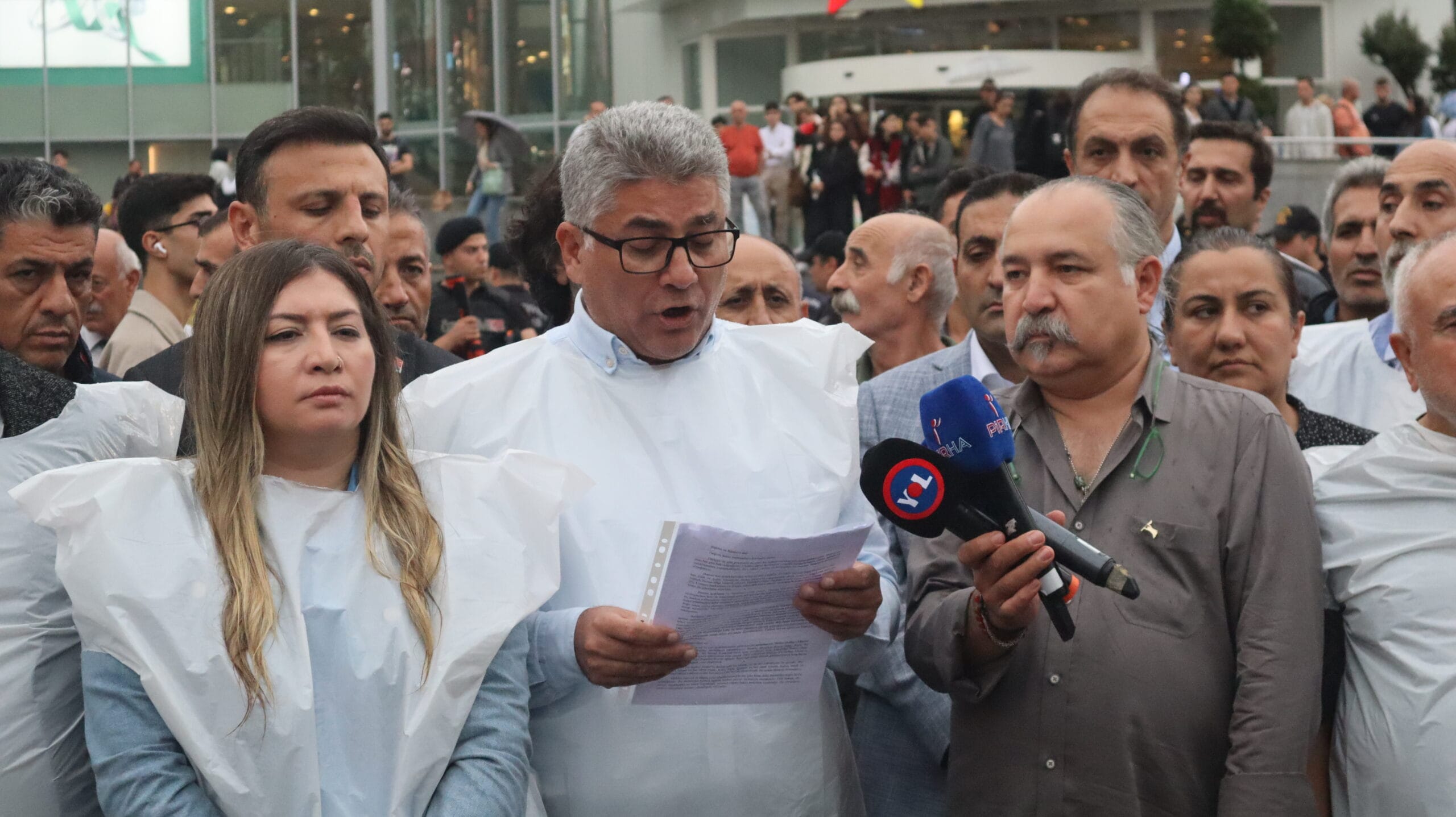 Açıklamayı PSAKD Genel Başkanı Cuma Erçe okudu. Adliye önünde hukuksuzca ablukaya alındıklarını ve sonra darp edilerek, ters kelepçeyle gözaltına alındıklarını ifade eden Erçe, basın açıklaması düzenlemenin anayasal bir hak olduğunu vurguladı.