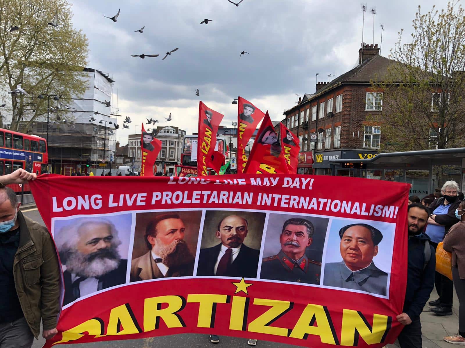 Yürüyüşte Partizan da “Yaşasın Proletarya Enternasyonalizmi” ve “Yaşasın 1 Mayıs” yazılı İngilizce pankartıyla yerini aldı.