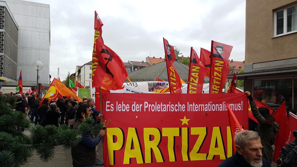 Nürnberg kentinde her yıl olduğu gibi bu yılda iki yürüyüş yapıldı. DGB ( Alman Sendikalar Birliği )’nin yaptığı yürüyüş saat 10.00 da Aufsessplatz’da başladı. Çarşı merkezinden geçerek DGB binası önüne kadar yüründü. yaklaşık 2000 kişinin katıldığı yürüyüşte Partizan Nürnberg de kortejiyle yer aldı. Yürüyüş boyunca, “1 Mayıs, 1 Mayıs Seni Yaşatacağız ”, ” Biji Yek Gulan ! ”, “Hoch die Internationale Solidarität”, ” Yaşasın Proletarya Enternasyonalizmi!” “Nieder mit dem Imperilalismus, Kapitalismus, Es lebe Revolution, Sozialismus und Komünismus ! “ sloganları Partizanlar tarafından haykırıldı. Dersim Aliboğazı’nda toprağa düşen TİKKO gerillaları anısına “Halk Savaşçıları ölümsüzdür” sloganları atıldı. DGB sendikasının yürüyüşünde, Alman devrimci örgütlerinden KPD-Aufbau, MLPD yer alırken, Türkiyeli ve T. Kürdistanlı devrimci demokratik kurumlarda bayrak ve dövizleriyle yürüyüşte yer aldı.