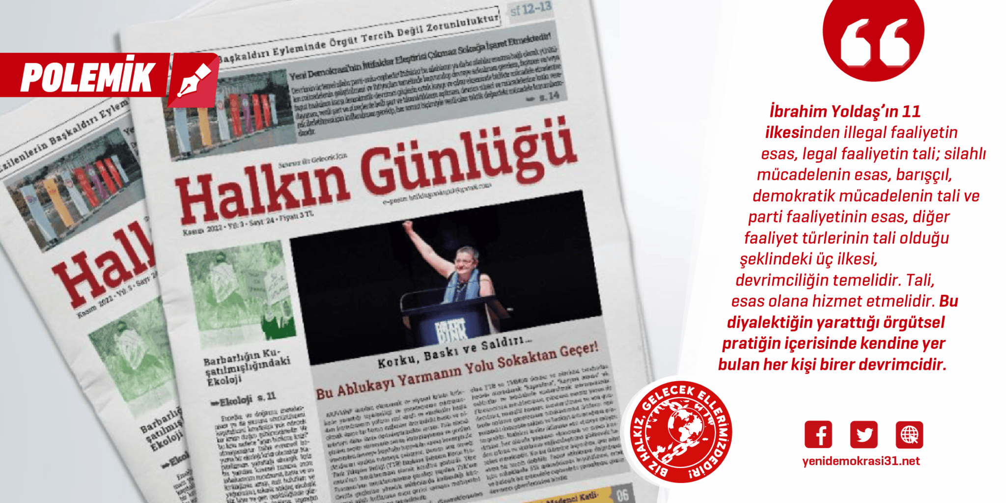 Gazetemizin 121. sayısında yayımlanan “İttifaklar Çözüm Olmayacak, Zafer Protokol Koltuklarından Çıkmayacak!” isimli Emek ve Özgürlük İttifakı’nı analiz eden ve ittifaka çeşitli eleştiriler yönelten yazımıza karşılık olarak, Halkın Günlüğü Gazetesi’nin 24. sayısında “Yeni Demokrasi’nin ‘İttifaklar Eleştirisi’ Çıkmaz Sokağa İşaret Etmektedir!” isimli bir polemik yazısı kaleme alındı.
