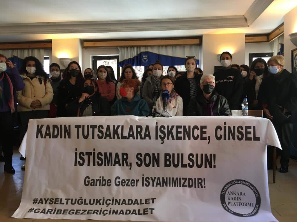 HABER MERKEZİ- Şüpheli şekilde tutuklu bulunduğu hapishanede ölü bulunan Garibe Gezer, hastalığı sebebiyle cezaevinde kalamayacak durumda olan tutuklu Aysel Tuğluk ve geçtiğimiz günlerde yaşadığı sıkıntılardan dolayı intihar eden KHK’li sağlık emekçisi Fatma Demirel için Ankara Kadın Platformu açıklama yaptı. Açıklamayı platform adına Semra Demir okudu.
