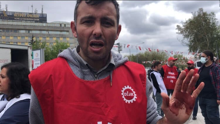 Alana giriş yapan Enerji-Sen Üyesi Mehmet Alî İçindere, polisler tarafından kafasına telsizle vurularak darp edildi.