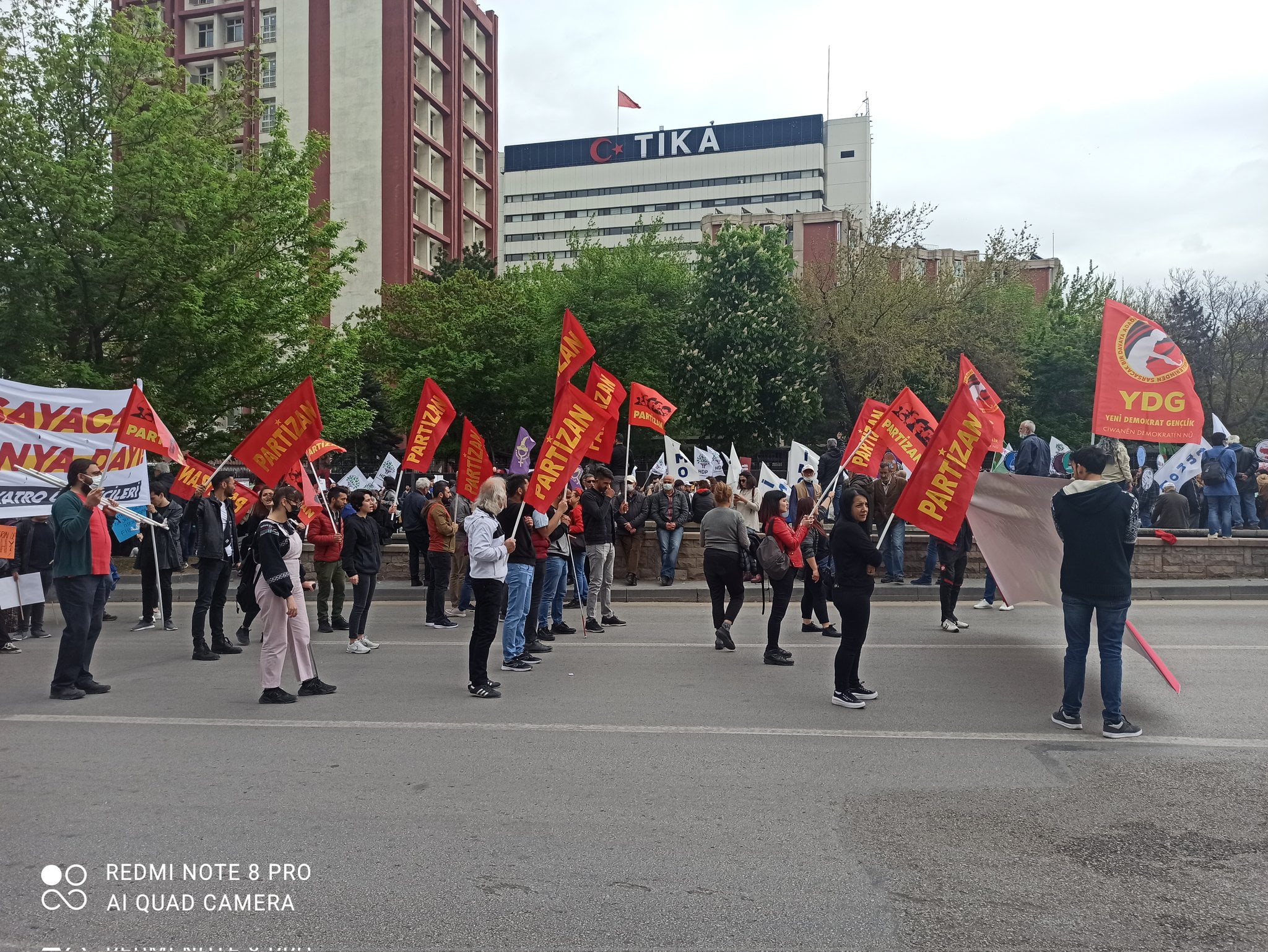 Mitingin ardından binlerce kişi “Örgütlü bir halkı hiçbir kuvvet yemez” sloganı eşlinde Tandoğan’dan Kızılay Meydanı’na yürüdü.