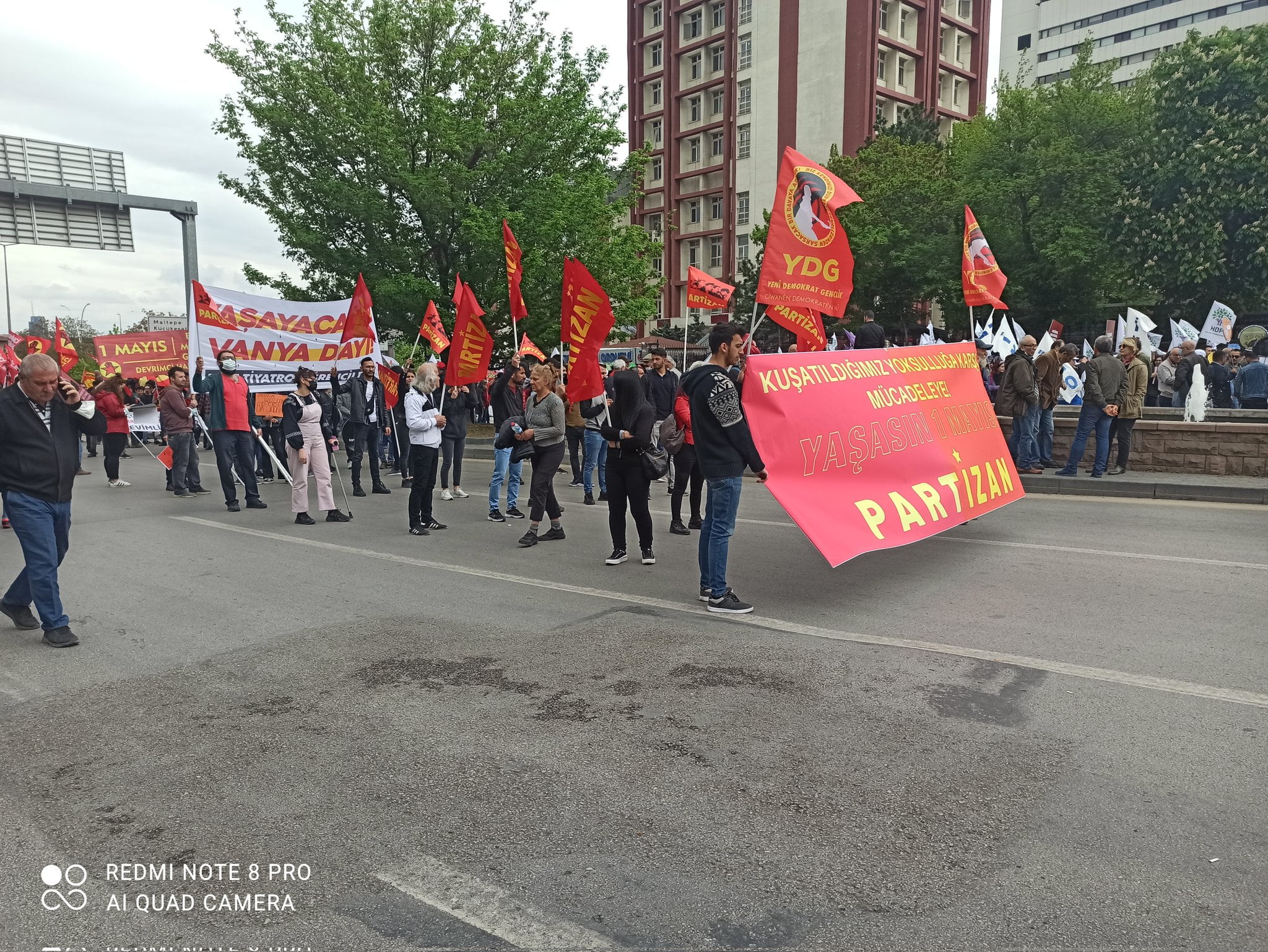 ANKARA- Ankara’da iki yıl sonra Tandoğan meydanında coşkulu 1 Mayıs kutlandı. Aralarında Partizan kortejinin de yer aldığı miting için on binler Atatürk Kültür Merkezi ve Kazım Karabekir Caddesi’nde oluşturdukları kortejlerle katıldı.