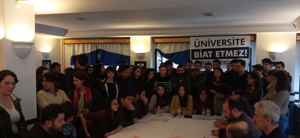 Toplantıda “Ankara Üniversitesi’nde öğrencilere yönelik baskılar, soruşturmalar, gözaltılar, ÖGB tacizleri, faşist çetelerin saldırıları artarak devam etmektedir. Bunun en son örneği Şili’de başlayan ve tüm dünyada erkek egemen sisteme karşı kadınların öfkesi ve isyanını; sokaklara, kampüslere taşıyan Las Tesis dans eylemine yönelik gerçekleştirilen polis şiddetidir. Yine okulumuzun Veterinerlik Fakültesi’nde sözde profesör Hasan Bilgili, kendi özel kliniğinde stajyer olarak çalıştırdığı öğrencisine cinsel şiddet uygulamış, bu cinsel şiddet örtbas edilmeye çalışılmış ve Hasan Bilgili’nin en kötü ihtimalle okuldan uzaklaştırılması beklenirken, ödül verilir gibi gizlice emekli edilmiştir. Tüm bu olaylar da okul yönetiminin kadın düşmanı karakterini ortaya koymaktadır. Ankara Üniversitesi rektörü Erkan İbiş rektör olarak atandığı ilk günden beri iktidarın okulumuzdaki gölgesi olmuştur” ifadelerinin yer aldığı açıklama okundu. Açıklama “19 Kasım günü Siyasal Bilgiler Fakültesi’nde düzenlenecek olan “Türkiye’nin modernleşme süreci ve Mekteb-i Mülkiye” sempozyumuna katılmak isteyen öğrenciler ÖGB’nin coplu saldırısına uğramış, bu saldırı sonrasında da faşist çeteler ve ÖGB iş birliğiyle öğrencilere yönelik art arda saldırılar düzenlenmiştir. Bu saldırılardan sonra okuldan toplu bir şekilde çıkmak isteyen öğrenciler polis tarafından engellenmiştir. Okul yönetimi öğrencilere karşı; faşist çeteler, ÖGB ve polisle ortaklaşa hareket ederek öğrencileri sindirmeye çalışmaktadır.