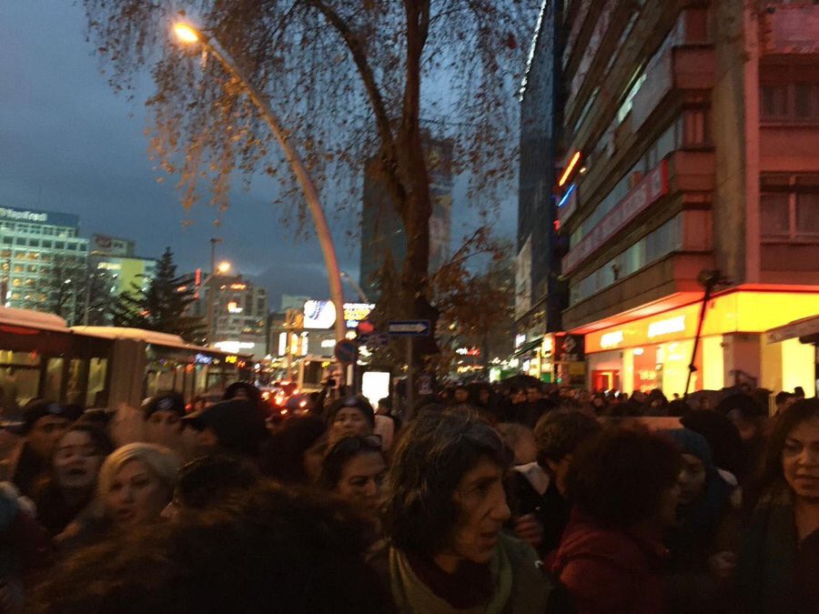 Kadınlar daha sonra Kızılay AVM’ önünde toplanarak, danslı eylem gerçekleştirdi. Ancak buraya da gelen polisler, dans eylemini gerçekleştiren kadınlara müdahale etti. Polisin müdahalesine karşı slogan atan kadınlar, polisin sert müdahalesine maruz kaldı. Polis 9 kadını yerde sürükleyerek gözaltına aldı.