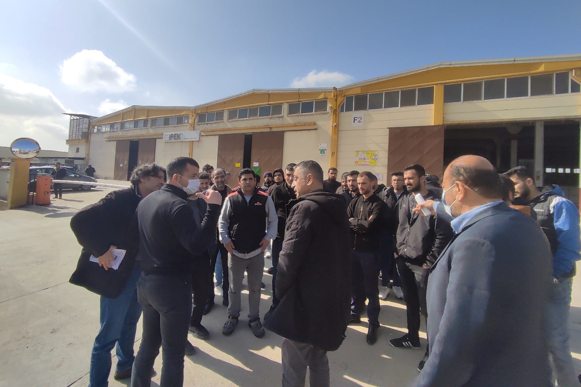 HABER MERKEZİ– Antep’te İpek Mekik Halı işçileri iş bıraktı. Patron fabrika önünde bekleyen işçilerin BİRTEK-SEN yöneticileri ile işçilerin konuşmasını engelledi, işçileri zorla fabrika içerisine soktu.