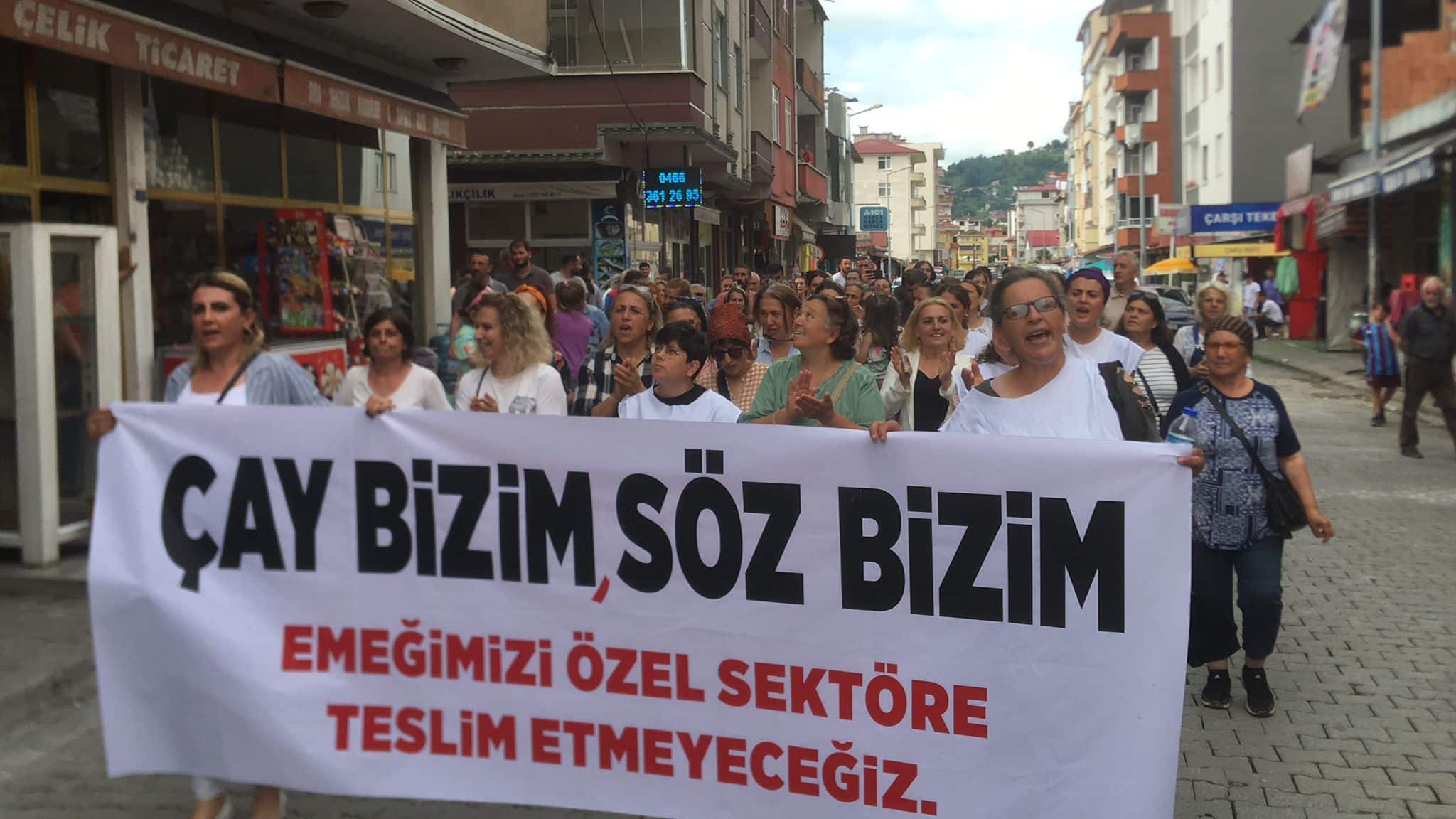 Artvin Kemalpaşa’da çay üreticileri, AKP tarafından hazırlanan çay kanunu teklifini protesto etti. Kemalpaşa Sağlık Ocağı önünde toplanan çay üreticileri, üzerinde “Çay bizim, söz bizim. Emeğimizi özel sektöre teslim etmeyeceğiz” yazılı pankartla; Kemalpaşa Meydanı’na kadar alkışlar ve sloganlarla yürüdü. Çay üreticilerine; Kemalpaşa Belediye Başkanı Ergül Akçiçek, CHP ve Sol Parti ile Halkevleri ve Umut-Sen de destek verdi.