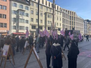 8 Mart günü ise Innsbruck’ta düzenlenen binlerce insanın katıldığı merkezî yürüyüşe katılım sağlanarak kadınların eşitlik, özgürlük ve sömürüsüz bir dünya talebi alanlarda haykırıldı. Yürüyüş başlamadan önce kadın platformu tarafından alanda çeşitli sahne performanslarının sergilendiği bir sahne kuruldu.