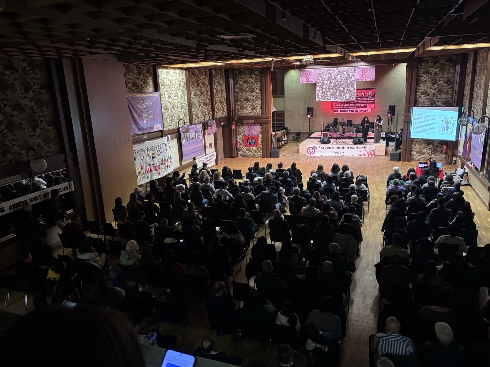 7 Mart akşamı Innsbruck’ta düzenlenen merkezî gecede, kadınların direnişi ve mücadele tarihini selamlayan konuşmalar yapıldı. Coşkulu geçen gecede kadınların özgürlük mücadelesinin büyütülmesi ve örgütlü dayanışmanın güçlendirilmesi gerektiği vurgulandı. Gece programında Mor Kızıl Kolektif ve ATİGF faaliyetçileri, yerellerde yürüttükleri kültürel çalışmaları programa dahil etti. Innsbruck Halk Oyunları ekibi yerli ve göçmenlerden oluşurken, Viyana ve Neunkirchen korosu ise kadınlar ve gençlerden oluşuyordu. Her iki kültürel çalışma da sahnede sergiledikleri performanslarla katılımcıların yoğun beğenisini kazandı.