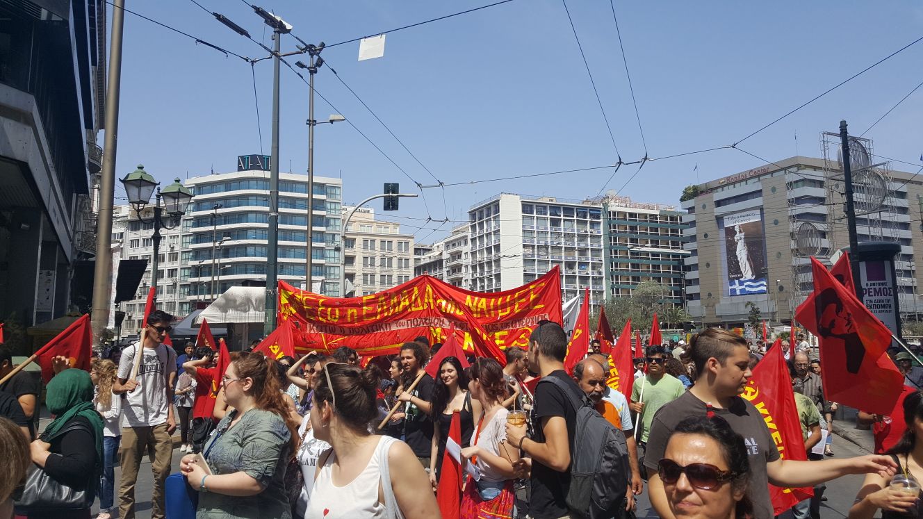Yürüyüş boyunca faşizme ve emperyalizme karşı ortak mücadele çağrısı yapıldı. Yunanistan, Kıbrıs, Türkiye, Kürdistan’ın her parçasındaki ve Filistin’deki mücadele vurgulanırken NATO, ABD ve AB karşıtı sloganlar atıldı. Yaşasın 1 mayıs sloganı yürüyüş boyunca Türkçe ve Yunanca atılırken,yürüyüş kortejinde önde yer alan İbrahim Kaypakkaya ve Partizan flamaları Yunan basınının ilgi odağı oldu.