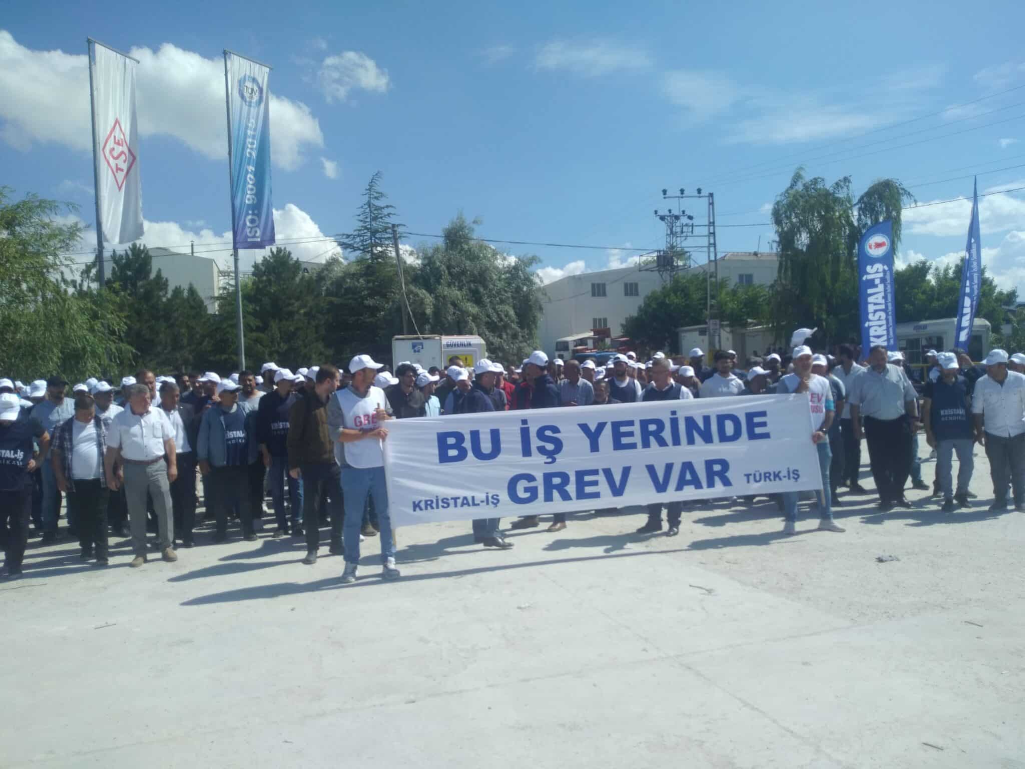 Sendika ve Atışkan Alçı patronları ile yapılan toplu iş sözleşmesi görüşmelerinde anlaşmaya varılamamasından ötürü Kristal iş sendikası 16 Haziran’da grev kararı astı. Tanınan sürede anlaşma sağlanamaması üzerine işçiler bugün greve çıktılar.