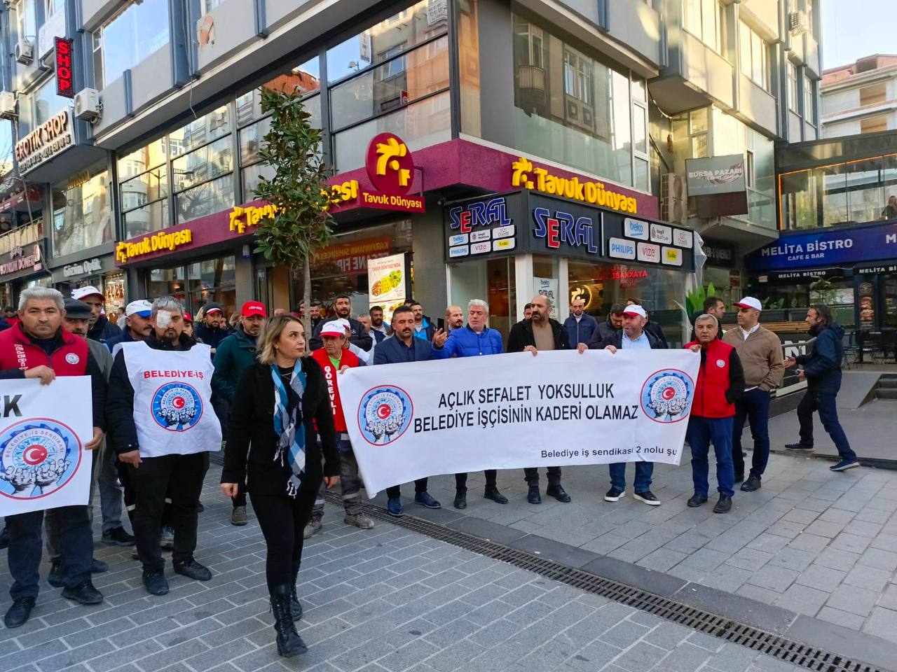 Açıklamada belediye işçilerinin şiddet ve baskı gördükleri dile getirilerek “Bizler belediyenin çalışan emekçileri olarak şiddet ve baskıların son noktasına geldik. Artık bardak taştı. Biz emekçiler ekonomik sıkıntılarla, geçim derdi ile boğuşurken, çocuğumuza, ailemize bir parça ekmek götürmenin mücadelesini verirken, kiramızı ödemek için çırpınırken, çoluk çocuğumuzu namertte muhtaç etmemek için yaşam mücadelesi veriyoruz.” dendi.