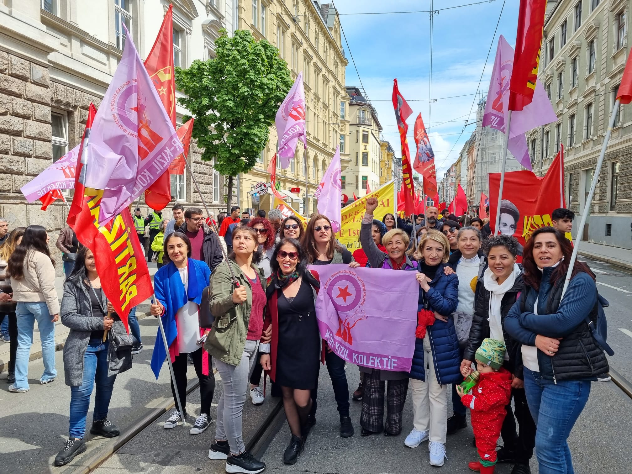 HABER MERKEZİ- Avusturya’nın farklı bölgelerinde gerçekleştirilen 1 Mayıs etkinliklerinin Innsbruck’daki adresi Landhausplatz oldu. Devrimci, demokrat kurumların katılım sağladığı etkinliğe tertip komitesi adına yapılan selamlamanın ardından katılımcı kurumlar kortejlerini oluşturarak yürüyüşe geçtiler. Partizan, AGEB, ATİGF ve Mor Kızıl Kolektif’in yanı sıra Halk Cephesi, DİDF ve ADGB bileşeni kurumlar yürüyüşe katılım sağladılar.