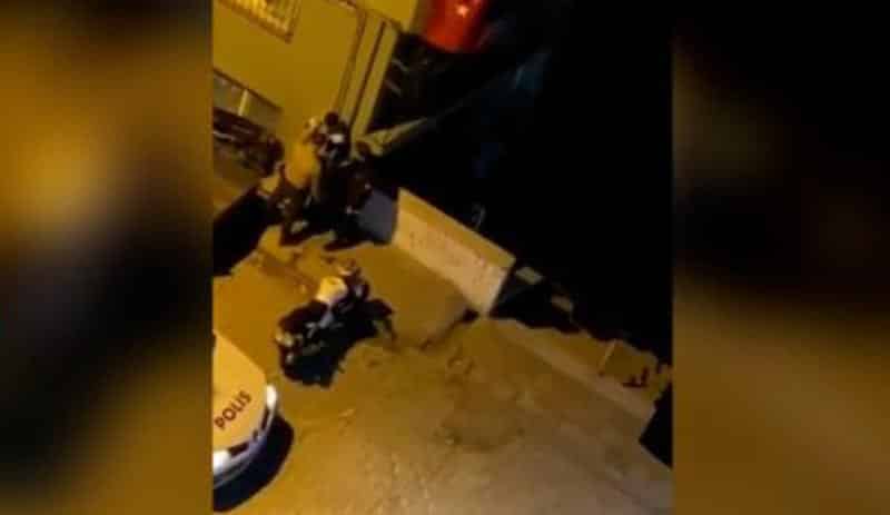 Motosikletliyi takip eden polis ekibi yaklaşık 100 metre sonra genci durdurdu. Polis aracından inen bir bekçi alkollü ve kasksız olduğu için durmadığı anlaşılan genci yakasından tutup duvara sıkıştırdı.