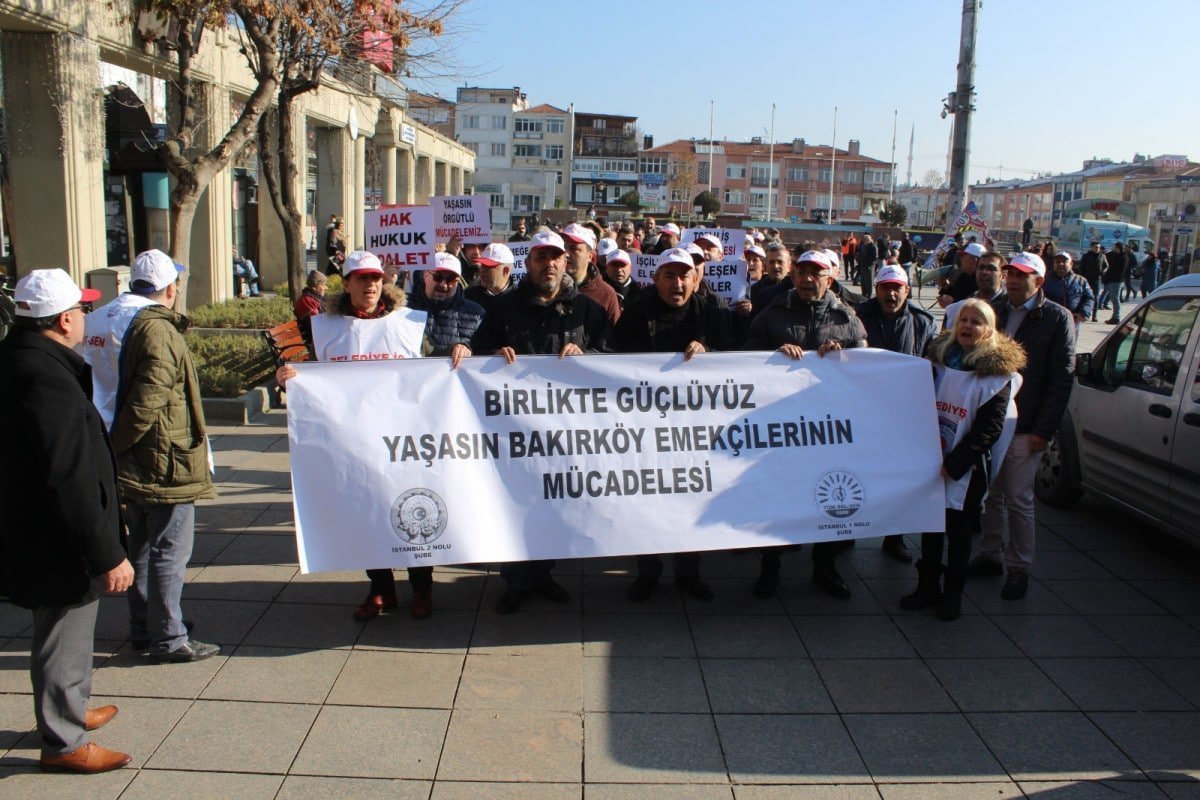 Sendikalar adına ortak basın metni belediye önünde okunurken, “Sorunlarımızın başında Belediye yönetiminin işçi ve memurlar olarak irademizi temsil eden sendikal kurumlarımıza karşı diyalogdan uzak tavrı gelmektedir. İşyerindeki sorunlarımızı çıkmaza sürükleyen, Bakırköy Belediyesi’ndeki iş barışını bozan ana neden Bakırköy Belediyesi yönetiminin bu yaklaşımıdır. Bakırköy emekçileri aylardır maaşlarını ve sosyal haklarını zamanında alamamakta, toplu sözleşmeden kaynaklı özlük hakları noktasında yaşamlarını olumsuz etkileyen sorunlar yaşamaktadır” denildi.