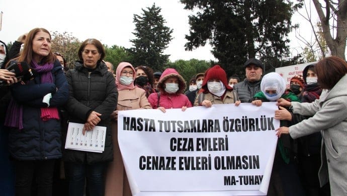 Marmara Tutsak ve Hükümlü Aileleri ile Dayanışma Derneği (MATUHAY-DER), cezaevlerinde yaşanan ölümlere ilişkin “Politik tutsaklara özgürlük” şiarıyla Bakırköy Kadın Hapishanesi önünde açıklama yaptı. Eyleme, tutuklu aileleri, Barış Anneleri, Halkların Demokratik Kongresi (HDK) Eşbaşkanı Cengiz Çiçek, Halkların Demokratik Partisi (HDP) Milletvekili Züleyha Gülüm’ün de aralarında bulunduğu çok sayıda kişi katıldı. “Hasta tutsaklara özgürlük cezaevleri cenaze evleri olmasın” pankartı açan kitle “Biji berxwedana zindanan” ve “Hasta tutsaklara özgürlük” sloganları attı.