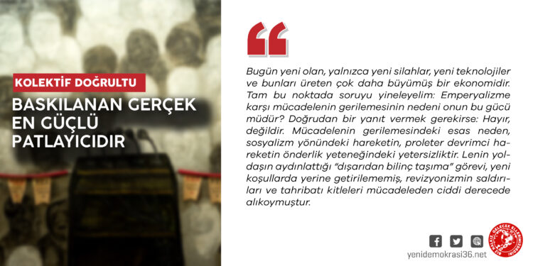 Bugün yeni olan, yalnızca yeni silahlar, yeni teknolojiler ve bunları üreten çok daha büyümüş bir ekonomidir. Tam bu noktada soruyu yineleyelim: Emperyalizme karşı mücadelenin gerilemesinin nedeni onun bu gücü müdür? Doğrudan bir yanıt vermek gerekirse: Hayır, değildir. Mücadelenin gerilemesindeki esas neden, sosyalizm yönündeki hareketin, proleter devrimci hareketin önderlik yeteneğindeki yetersizliktir. Lenin yoldaşın aydınlattığı “dışarıdan bilinç taşıma” görevi, yeni koşullarda yerine getirilememiş, revizyonizmin saldırıları ve tahribatı kitleleri mücadeleden ciddi derecede alıkoymuştur. Oysa emperyalizm karşısında kitleler dünden çok daha güçlüdür; gelişmiş ekonominin gerçek yaratıcıları olarak sayıca çok daha fazladırlar ve aynı zamanda dünden çok daha açık biçimde geleceksizdirler.