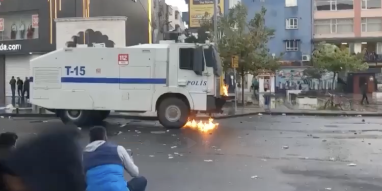 Komando Caddesi’nde de gençler barikat kurdu. TOMA ve zırhlı araçlara taşlarla karşılık veren gençler, bir TOMA’yı etkisiz hale getirdi. Polisin saldırısında DEM Parti İl Eş Başkanı Songül Korkmaz baygınlık geçirdi. Korkmaz çevredekilerin yardımıyla hastaneye kaldırıldı.