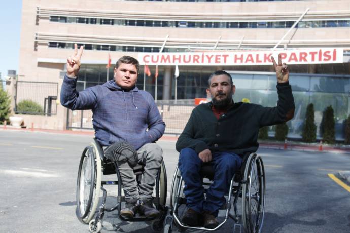 Konuya ilişkin CHP Adana İl Başkanı Mehmet Çelebi ile görüştüklerini ancak çözüm bulamadıkları için Ankara’ya geldiklerini söyleyen Karadoğan, “Engelliler olarak, ‘Engelliler dilenerek değil, direnerek kazanacaklar’ demek için buradayız. Talebimiz CHP Genel başkanı Kemal Kılıçdaroğlu’nun bize ıslak imzalı bir taahhütname vermesi. Taleplerimiz yerine gelene kadar da burada kalkmayacağız. Biz buraya her şeyi göze alarak geldik, hayata karşı örgütlü insanlarız biz, bu ülkede engelli bir yurttaş olmak demek aldığınız her nefeste mücadele etmeniz gerek anlamına geliyor” dedi.