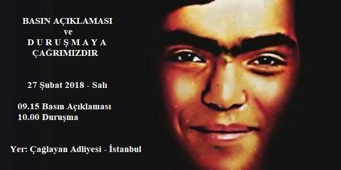 27 Şubat Salı günü saat:10.00’da Çağlayan Adliyesi’nde 27. Ağır Ceza Mahkemesi’nde görülecek duruşma öncesi 09.30’da adliye önünde basın açıklaması düzenlenecek.