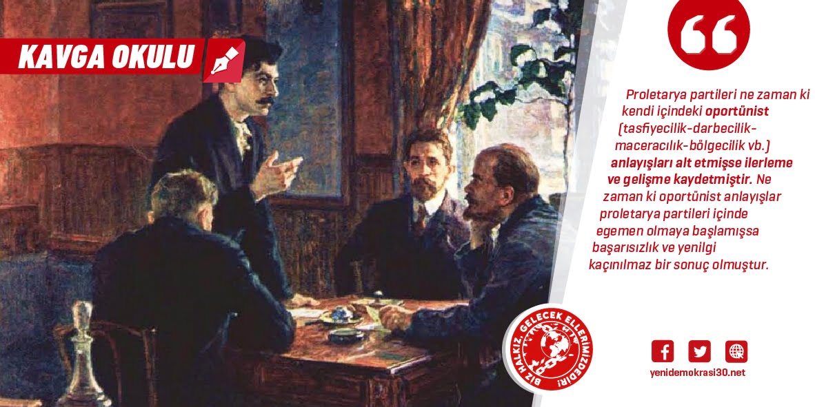 Proletarya Partisini başarıya ulaştıracak olan politik çizgisinin doğruluğu ve onu politik hedefine götürecek olan örgütsel birliğinin gücüyse, politik çizginin doğruluğunu ispatlayacak, tanıtlayacak, onu maddi bir güce dönüştürecek olan devrimci teorinin yaratıcı tarzda pratiğe uygulanma sorununun çözülmesi gerekir. Bu sorun devrimci tarzda çözülmedikçe politik çizginin doğruluğu ispatlanmaya muhtaç durumda kalmaya devam edecek demektir. Devrimci teori ve pratik arasındaki her kopukluk ve uzaklık kaçınılmaz olarak politikada oportünizmin ortaya çıkmasına neden olur. Oportünizmin ortaya çıkması teori ve pratik arasındaki kopukluğun kaçınılmaz adıdır. Proletarya partileri ne zaman ki kendi içindeki oportünist (tasfiyecilik-darbecilik- maceracılık-bölgecilik vb.) anlayışları alt etmişse ilerleme ve gelişme kaydetmiştir. Ne zaman ki oportünist anlayışlar proletarya partileri içinde egemen olmaya başlamışsa başarısızlık ve yenilgi kaçınılmaz bir sonuç olmuştur. Kısaca proletarya partileri içinde ortaya çıkan oportünizmle, yaşanan örgütsel başarısızlık ve yenilgi arasında kopmaz bir diyalektik bağ vardır. Parti içinde anlayış-uygulama ve denetlemedeki kırılma noktaları ortaya çıkarılıp bu kırılmaya neden olan etmenler araştırılıp incelenerek, çözülmeye başlanırsa ileri düzeyde bir devrimci kavrayış yaratılır, devrimci teori pratikte egemen kılınır. Devrimci teori ve pratik arasındaki diyalektik bağın kapsamlı irdelenmesi demek ayrıntılarda gizli olan konuların ve pratikte ortaya çıkan sorunların incelenmesi demektir. Bugün sahip olunan devrimci teori ile pratiğin örgütlenmesi arasında sorun olduğu bir gerçek ise bu sorunun yaşanmasına neden olan temel ögenin devrimci teorinin, Proletarya Partisinin programatik görüşlerinin eksik ve yetersiz kavranışı olduğunu belirtelim. Parti çizgisinin sınıf bilinçli proleterlerce kavranış yetersizliğinin olduğunu ifade edelim. Bu gerçeklik öncelikli olarak kabul edilmelidir. Parti çizgisinin bütünlüklü bir politika olarak uygulanamamasının temel nedeni kavrayış darlığında ve derinlikten uzak bilginin, öteden beri oluşmuş ezberlerin tekrarlamasına rağbet edilmesindendir.