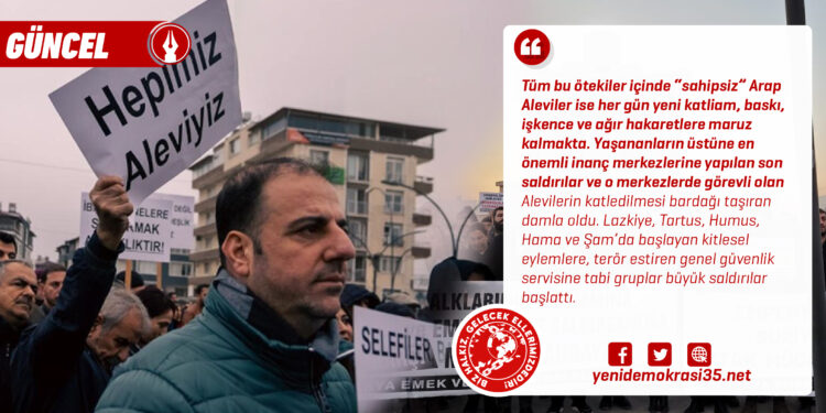 Suriye’de son süreç orada yaşayan bütün “ötekilerin” ölüm kalım savaşına sahne olmaya başladı. Suriye’de Arap Aleviler, Hıristiyanlar, Ermeniler, Kürtler ve Dürziler için güvenlik sorunu katbekat büyümüş durumda. Kendi silahlı gücü olmayan için bunu sağlamak zorunluluğu söz konusudur. Kürtler öz savunmalarını inşa ederken Dürziler Siyonist İsrail’in himayesini de kabul etmek üzere farklı seçenekleri gündemine aldığını gösterdiler, onların da bir askerî liderliği söz konusu. Büyük endişeleri olsa da Avrupa’nın desteğini almış olan Hristiyan cemaati kendini şimdilik koruma altında hissetmekte; yine de selefi terör gruplarının saldırı olasılığı her an için gündemde. Tüm bu ötekiler içinde “sahipsiz” Arap Aleviler ise her gün yeni katliam, baskı, işkence ve ağır hakaretlere maruz kalmakta. Yaşananların üstüne en önemli inanç merkezlerine yapılan son saldırılar ve o merkezlerde görevli olan Alevilerin katledilmesi bardağı taşıran damla oldu. Lazkiye, Tartus, Humus, Hama ve Şam’da başlayan kitlesel eylemlere, terör estiren genel güvenlik servisine tabi gruplar büyük saldırılar başlattı. Yolda gördükleri kişileri ya da ev baskınlarıyla aldıkları kişileri yargısız infazla katlettiler. Bunları yaparken de canlı yayın yapan cihatçı gruplar Alevileri topyekûn imha edeceklerini bildiren konuşmalar yaptılar. Buna rağmen Türkiye’de İslam’a dayanan gerici siyasal yapılanmalar ve burjuva-feodal medya yaşanan gelişmeleri “Esad yanlıları isyan ediyor” başlığı altıda yayıp katliamları meşrulaştırmanın yolunu aradılar. Türkiye’de Alevi yönelik katliamcı yönelimleri kınamak ve teşhir etmek amaçlı eylemler ise yasaklanıyor; eylemciler provoke edici, kışkırtıcı gösterilerek terörize ediliyor. Suriye’de çeşitli inanç önderleri cihatçı gruplara karşı bir direniş örgütlemeyi amaçlayan açıklamalar yapıyorken Humus vilayetinde bu içerikte bir silahlı direnişin başlatıldığı söyleniyor. Lübnan Hizbullahı’nın da savaş ilan ettiğine dair söylentiler var. Bu son günlerde ise özellikle Şam ve Humus vilayetlerinde yaşayan Alevi halk Lazkiye ve Tartus vilayetlerine tehcir ediliyor ve orada toplu kıyıma doğru itiliyorlar. Gitmek istemeyenler ise ya öldürülüyor ya da tutuklanıp türlü işkencelere maruz bırakılıyor.