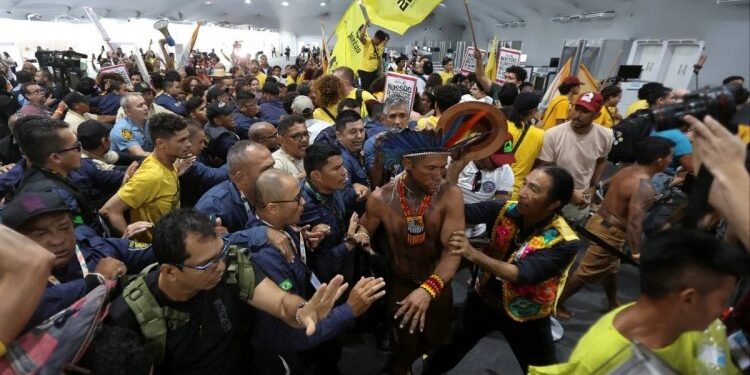 Yerel basında yer alan haberlere göre geleneksel kıyafetler giyen yerli halklar, “Ormanlarımız ve topraklarımız satılık değil” yazılı dövizler taşıyan göstericiler, Birleşmiş Milletler (BM) İklim Zirvesi’nin yapıldığı salonun girişinde toplandı.