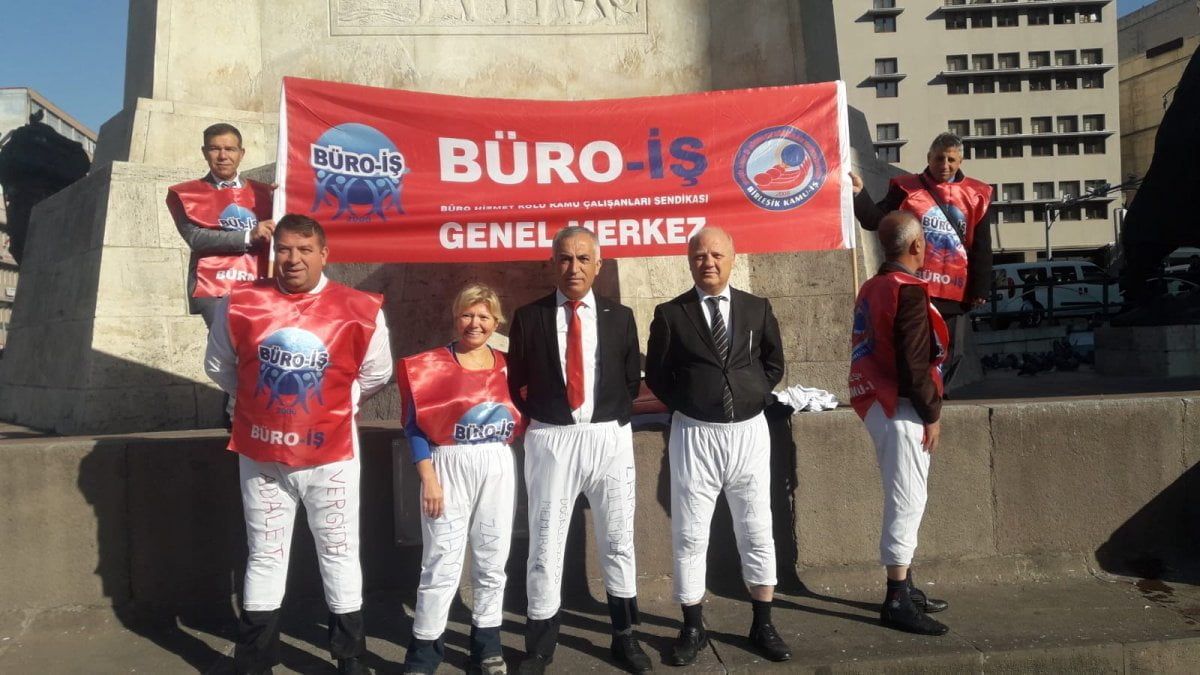 HABER MERKEZİ- Birleşik Kamu-İş’e bağlı Büro-İş Sendikası, kamu emekçilerinin, sabit ve dar gelirli çalışanların ekonomik kayıplarını, 2020 bütçesini ve yeni vergileri don giyerek protesto etti. Yapılan açıklamada, “Bu gidişle korkarız hükümet vergi, harç ve zam adı altında donumuza kadar haraç alacak. Bütün emekçileri örgütlü olarak bu soygun düzenine dur demeye çağırıyoruz” denildi.